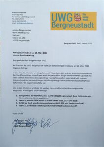zum kommenden Stadtrat am 18. März 2026 haben wir zwei Anfragen gestellt: